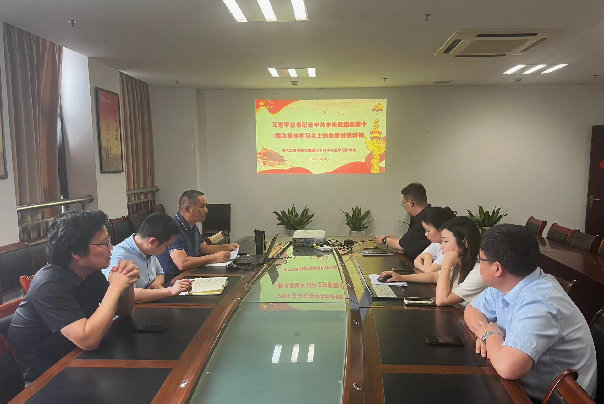 6月4日下午,电气学院党委理论学习中心组扩大会围绕习近平总书记在中共中央政治局第十四次集体学习的重要讲话精神进行专题学习和交流研讨,研究部署学院2024届毕业生就业工作。学院领导班子、相关教研室和专业负责人、辅导员等参加会议,学院党委书记杨清刚主持会议。