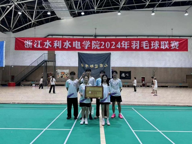 2024年6月5日晚,浙江水利水电学院羽毛球联赛圆满结束。其中以杨通,朱钰钦,梁智涵,叶雨欣,何锦虹等为代表的7名同学为我院勇夺校羽毛球联赛第一!